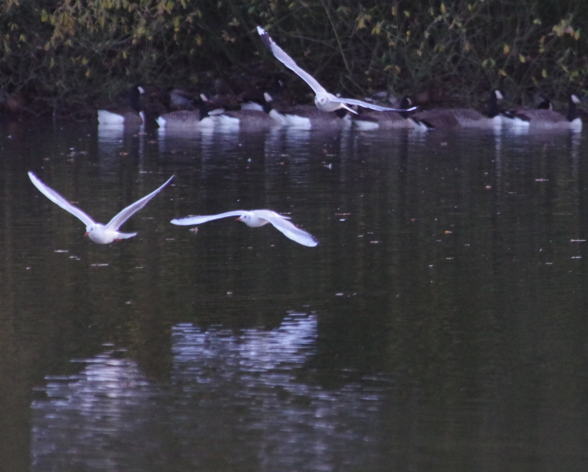 Canadese ganzen en kokmeeuw